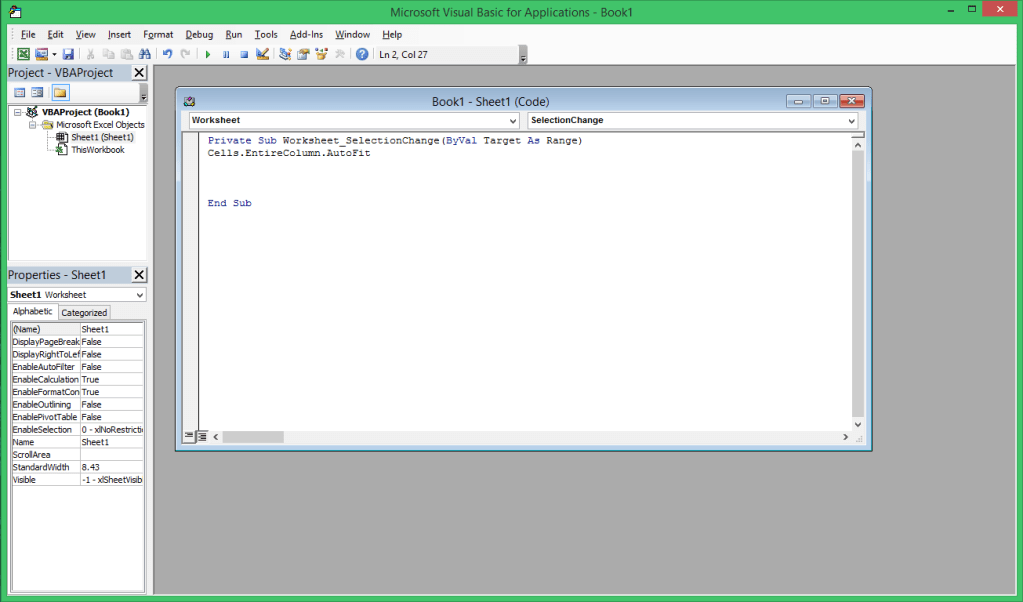 Right Click Sheet1 and click on View Code